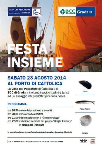 Cozze, pesce azzurro e vongole, ovvero il meglio del pesce dei nostri fondali trionferà sulle tavolate di “Festa insieme”, l'iniziativa realizzata dalla Cooperativa Casa del Pescatore e dalla Banca di Credito Cooperativo di Gradara.